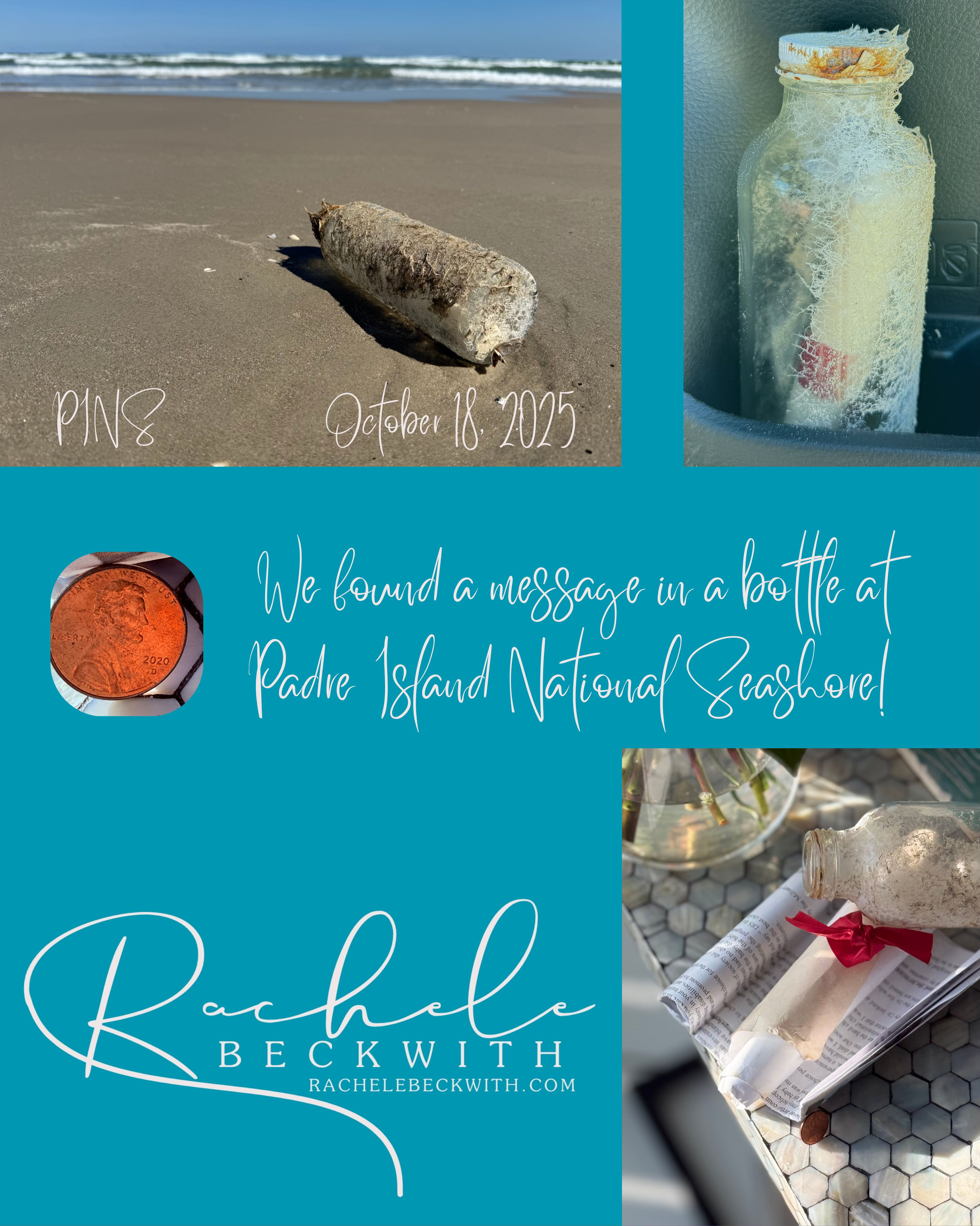 It was a serendipitous moment on our way down Padre Island National Seashore. I spotted a beautiful piece of driftwood. Of course, I said I ‘needed it’ and the thought would not leave me alone. After several more feet on our drive and him asking me twice, if I wanted to turn around to grab it, I concurred. Once we grabbed the wood, I remembered seeing two glass jars, not bottles, but curiosity got the best of me. Shane was easily convinced to continue in the opposite direction to look for the jars. We spend about 99% of our beach time searching for a message in a bottle!